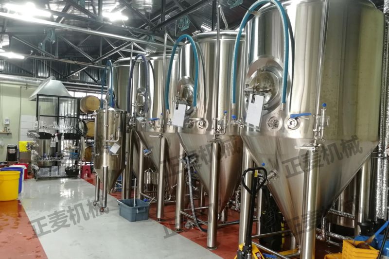 發(fā)酵是啤酒生產(chǎn)中極其重要的工藝過程。是一個有酵母參與的復(fù)雜的生化反應(yīng)過程,發(fā)酵罐為錐底圓柱形,罐體具備自身冷卻裝置,可很容易地控制發(fā)酵溫度;罐底為錐形,回收酵母及清洗都很方便;罐體具有CIP清洗系統(tǒng),保證了生產(chǎn)中的衛(wèi)生安全。具備了先進(jìn)的國際發(fā)酵工程技術(shù),可采用PLC自動控溫技術(shù)。全過程控制啤酒發(fā)酵。